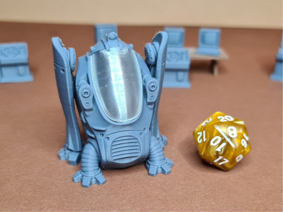 "Officer, what do you see down there?" "Not much captain, the planet seems pretty desolate" "Wait!....." ggggghhh "I see something" ggggggh "Its closing in fast!" gggggghhhh "Officer, get out of there! Quick!" gggggggh "Officer? Di you copy" ggggggh. This piloted space walker is perfect for sending your players on exiting space adventures on exotic planets. The walker includes a removable windshield and pilot and can be purchased with or without base.