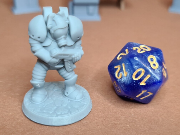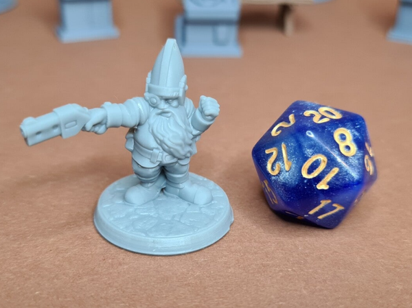 The miniatures are 3D printed from high quality grey resin. This technique produces very detailed miniatures, which have been cleaned, hardened, and are ready to prime and paint.