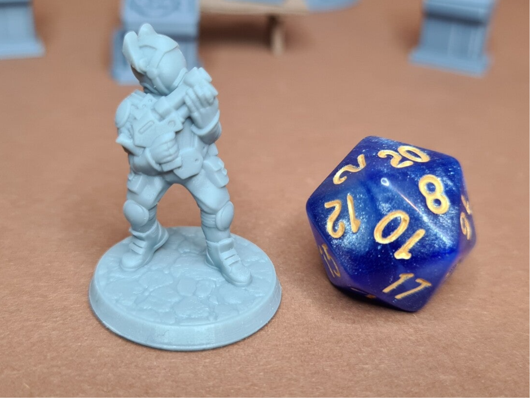 The miniatures are 3D printed from high quality grey resin. This technique produces very detailed miniatures, which have been cleaned, hardened, and are ready to prime and paint.