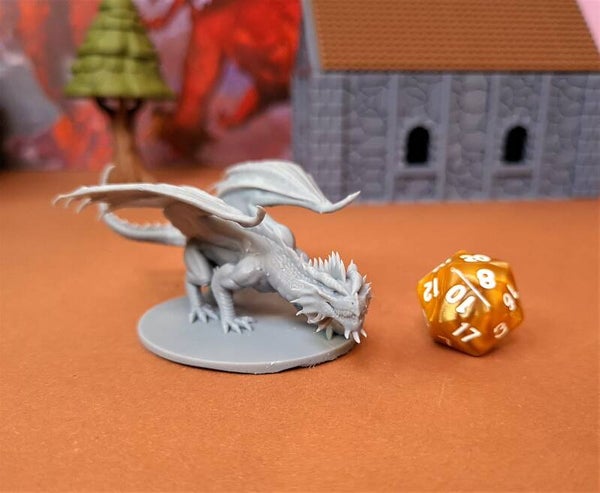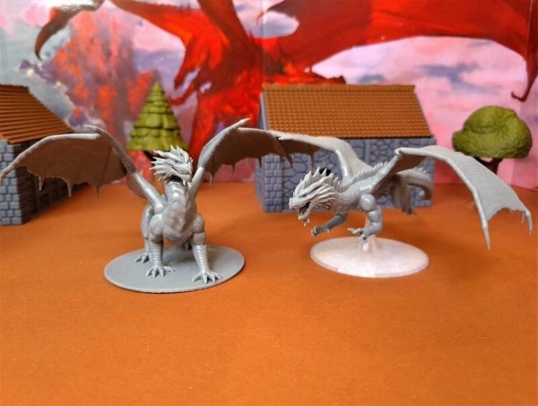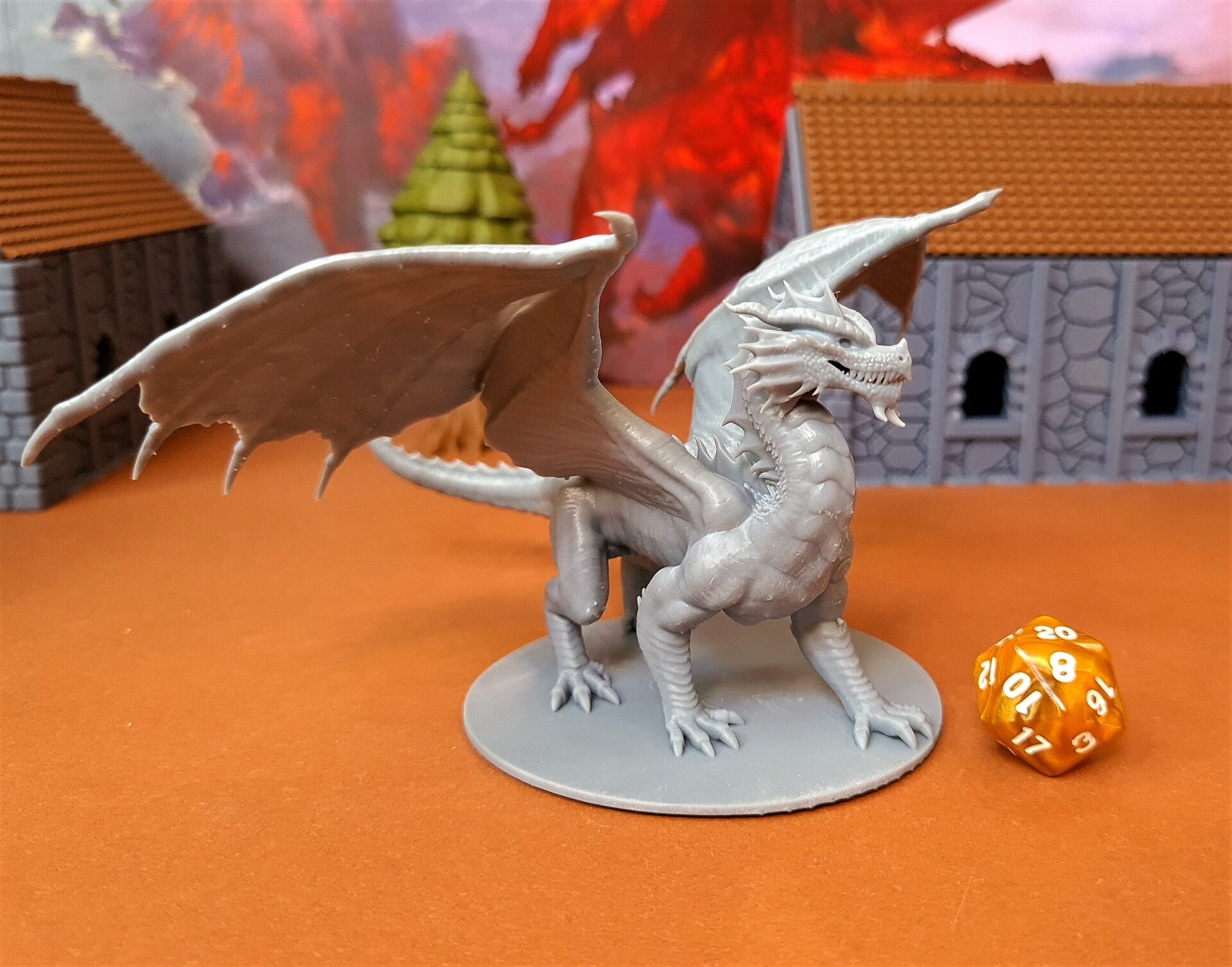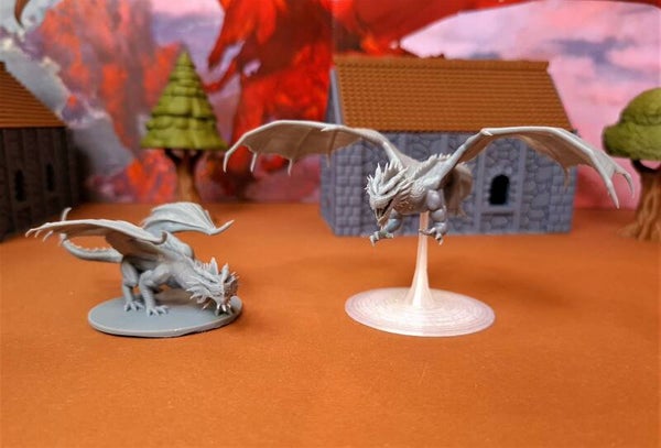 The dragons are properly scaled for D&D 5e, young being Large and adult being huge. Both Young and Adult dragons have two different designs, standing and flying, pick whichever suits your game better, or buy them together at a discounted price.