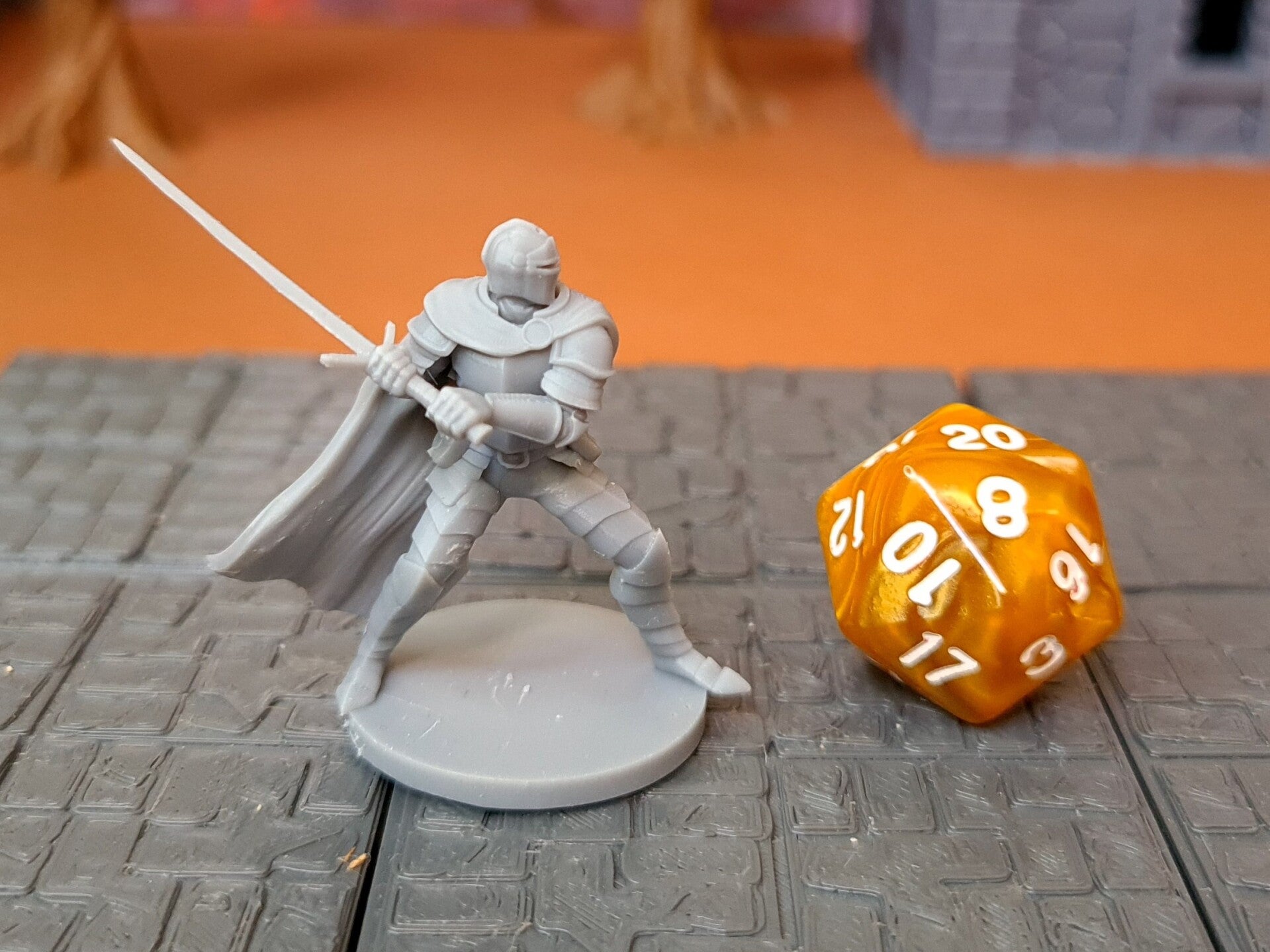 The Knight is 3D printed from high quality grey resin. This technique produces very detailed miniatures, which have been cleaned, hardened, and are ready to prime and paint.