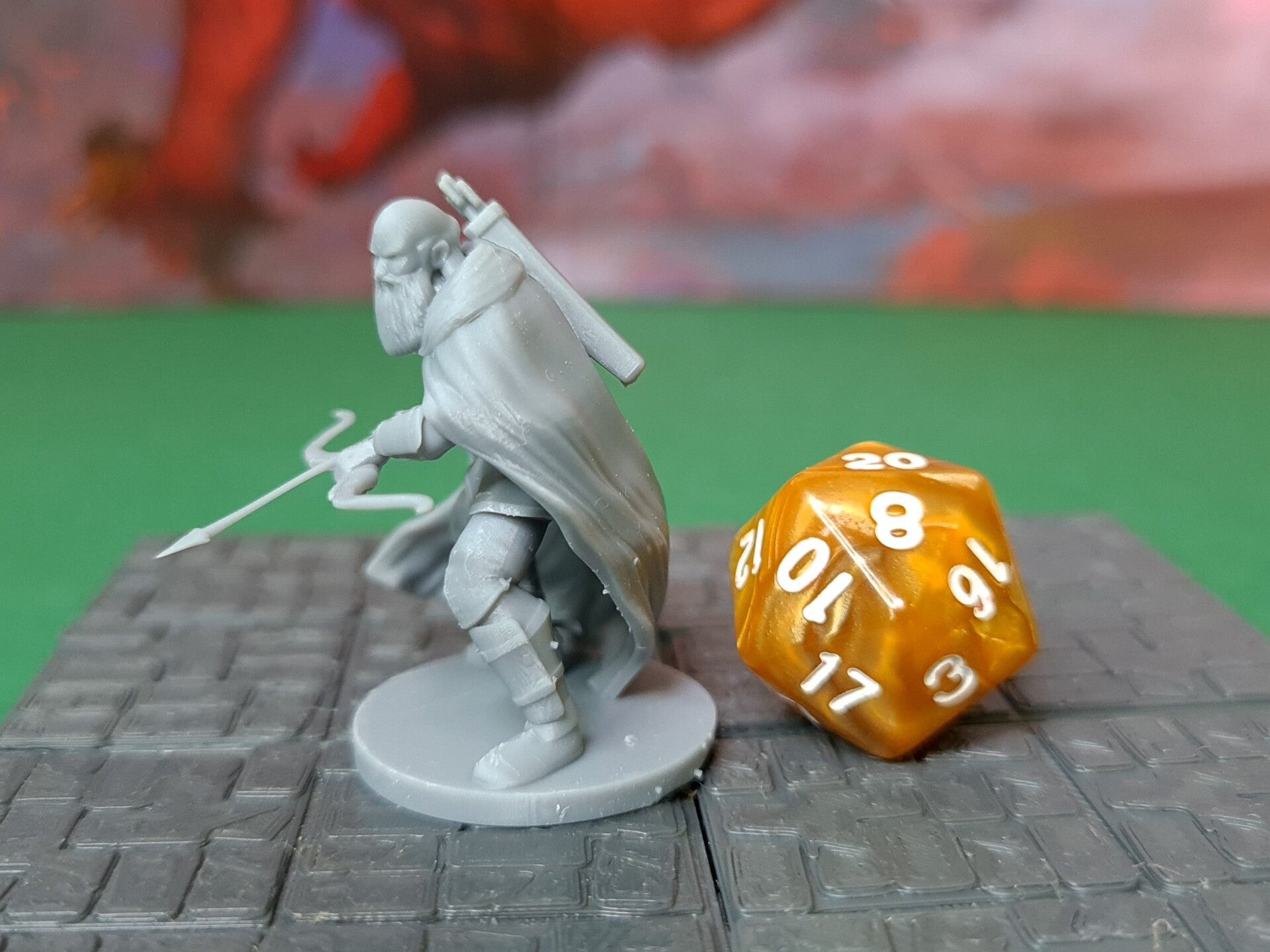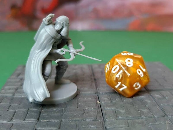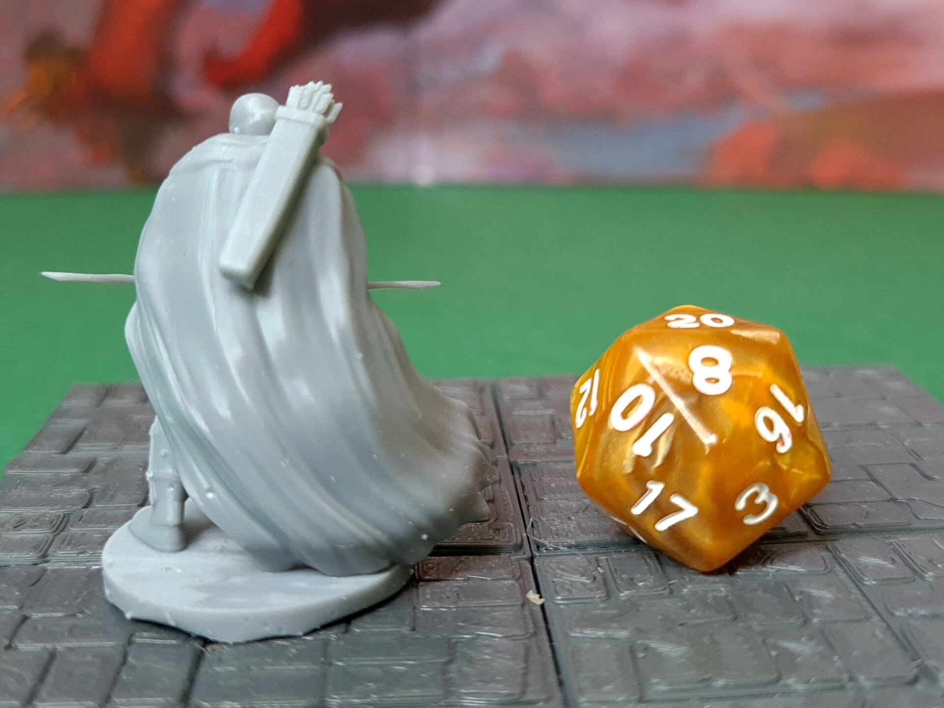 The miniature is scaled for 28mm games common in Dungeons and Dragons (D&D), Pathfinder, and most other popular tabletop games.