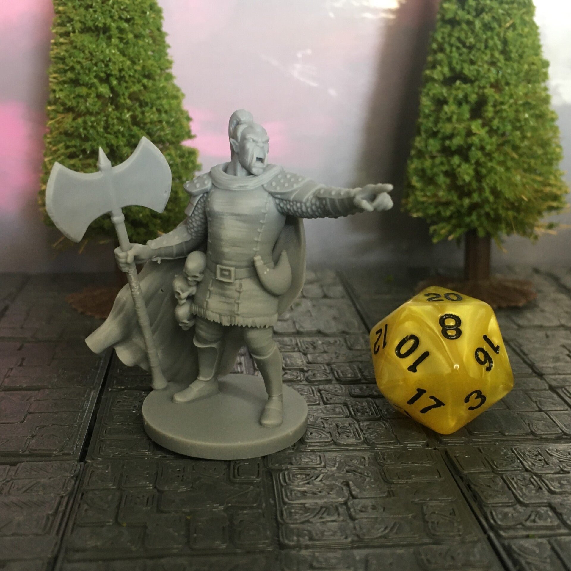 The miniature pirates are scaled for 28mm games common in Dungeons and Dragons (D&D), Pathfinder, and most other popular tabletop games.