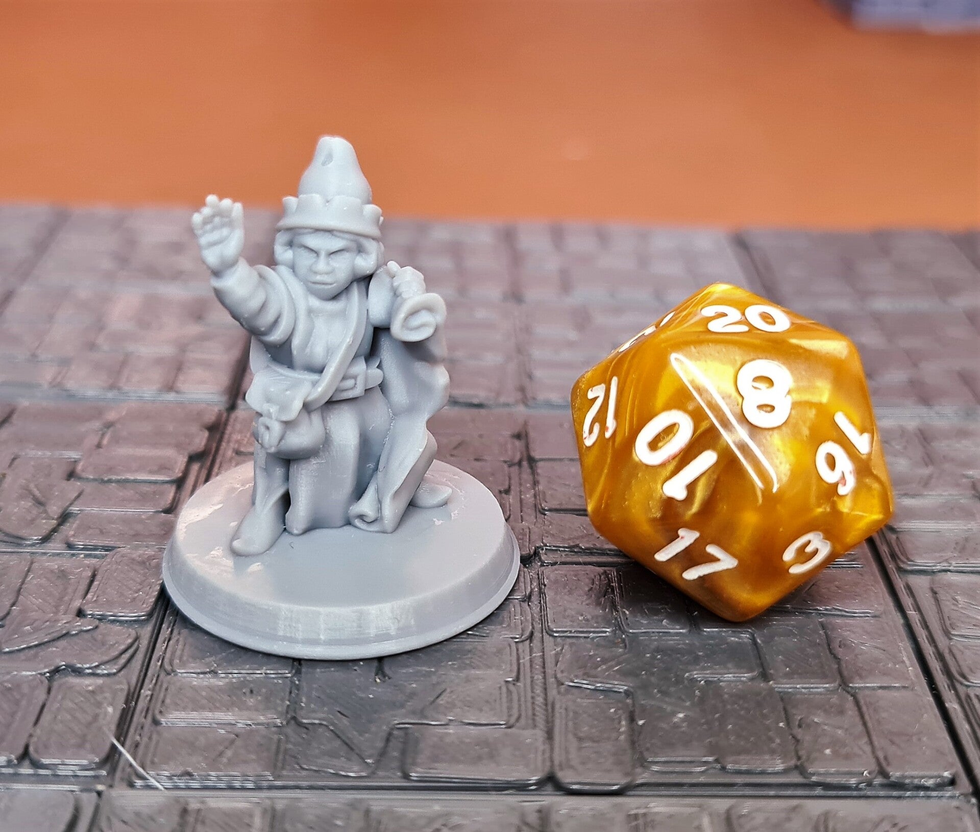 This Halfling Wizard miniature is scaled for 28mm games common in D&D, Pathfinder, and most other popular tabletop games.