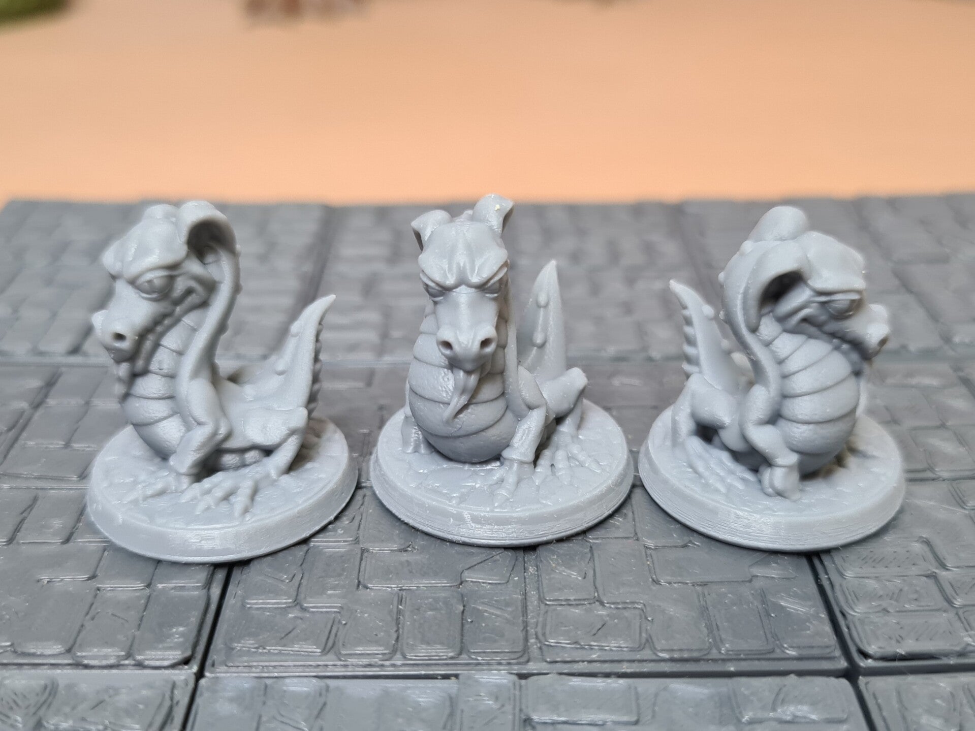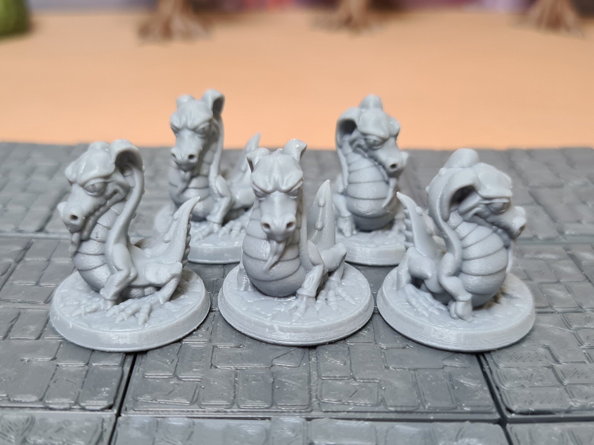 "Wow, look, the whole room is filled with eggs!" Suddenly, as one of the partymembers reaches to touch one of the eggs, cracking sounds start to fill the room. "Oh no". Use these hatching dragon eggs and baby dragons to set up an unique encounter for your party of players. Buy them as individual minis or in larger sets at discounted prices.