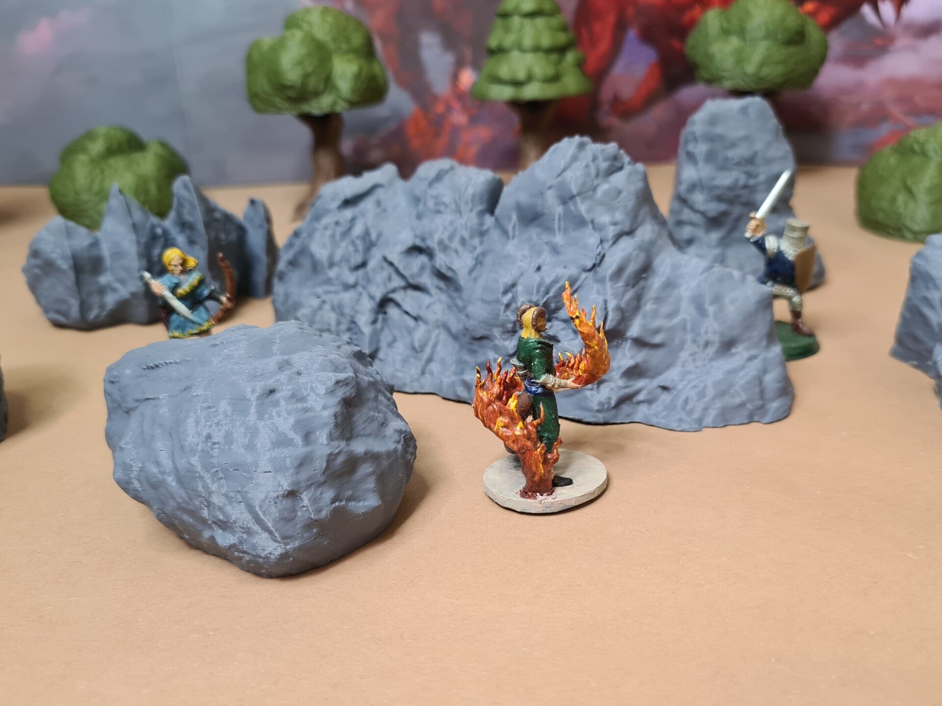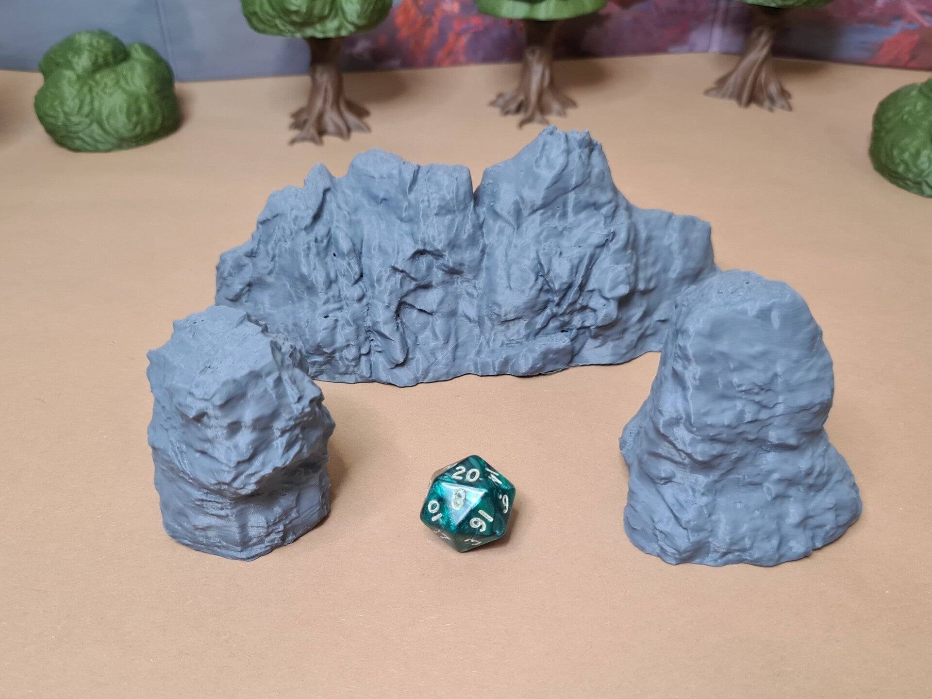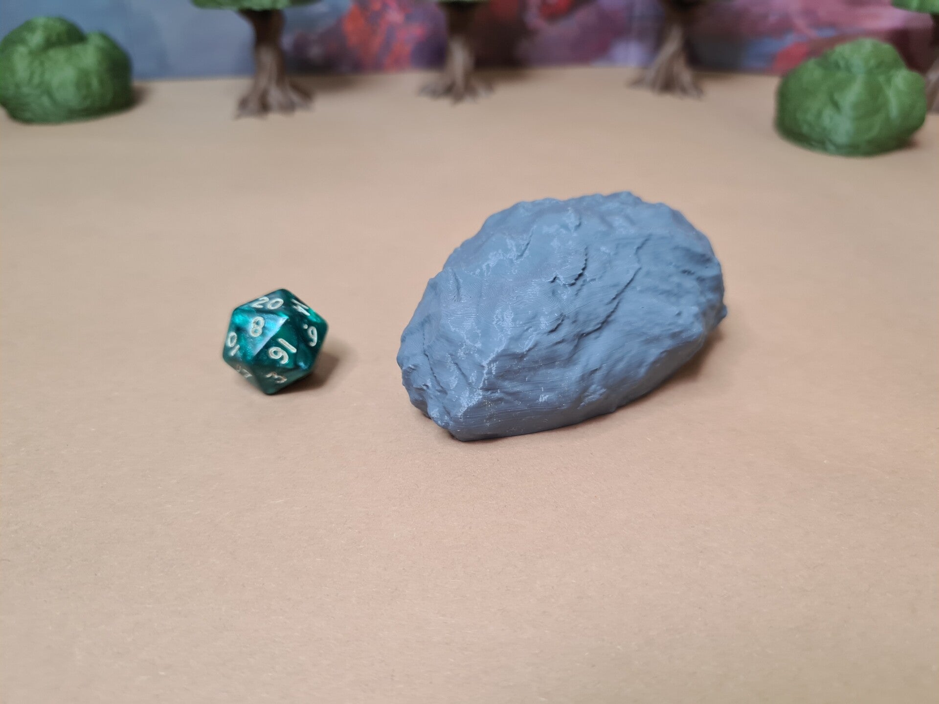 The Rocks are scaled for 28mm games common in D&D, Pathfinder, and most other popular tabletop games.