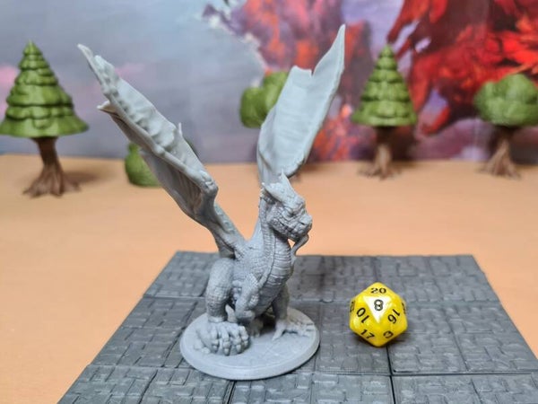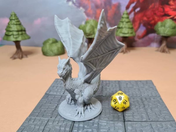 These dragon miniatures are scaled for 28mm games common in D&D, Pathfinder, and most other popular tabletop games.