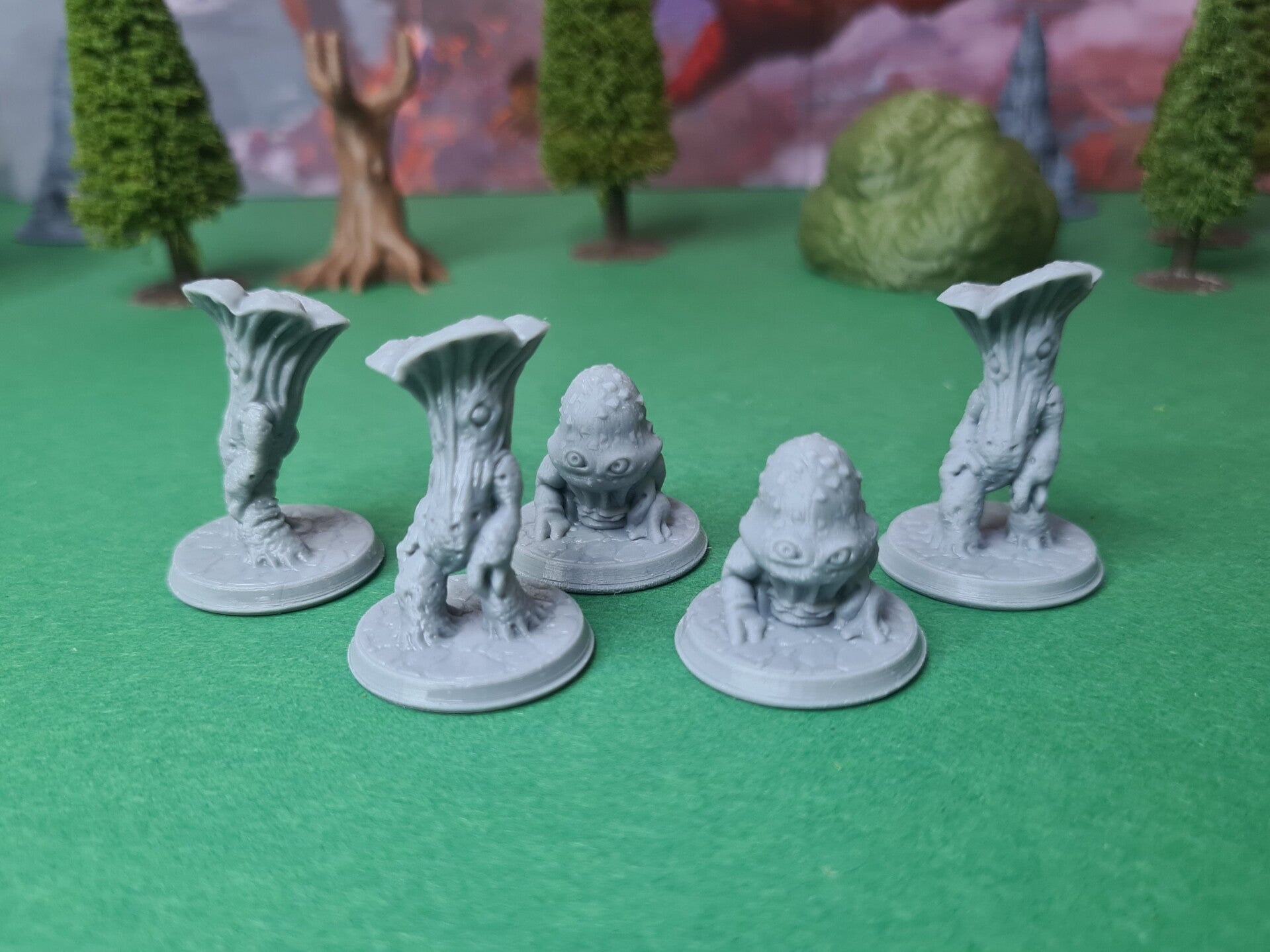 "Watch it, I wouldn't want you to get my spores on you." These Myconids are the perfect encounter for any party of low level adventurers. They can be bought separately, or in groups of 5, 10, or 15. You can specify your group composition by sending a message with your order, or go for the parties depicted in the pictures. In total there are 2 different Myconids to choose from: