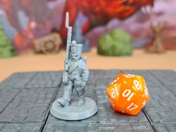 The miniatures are 3D printed from high quality grey resin. This technique produces very detailed miniatures, which have been cleaned, hardened, and are ready to prime and paint.