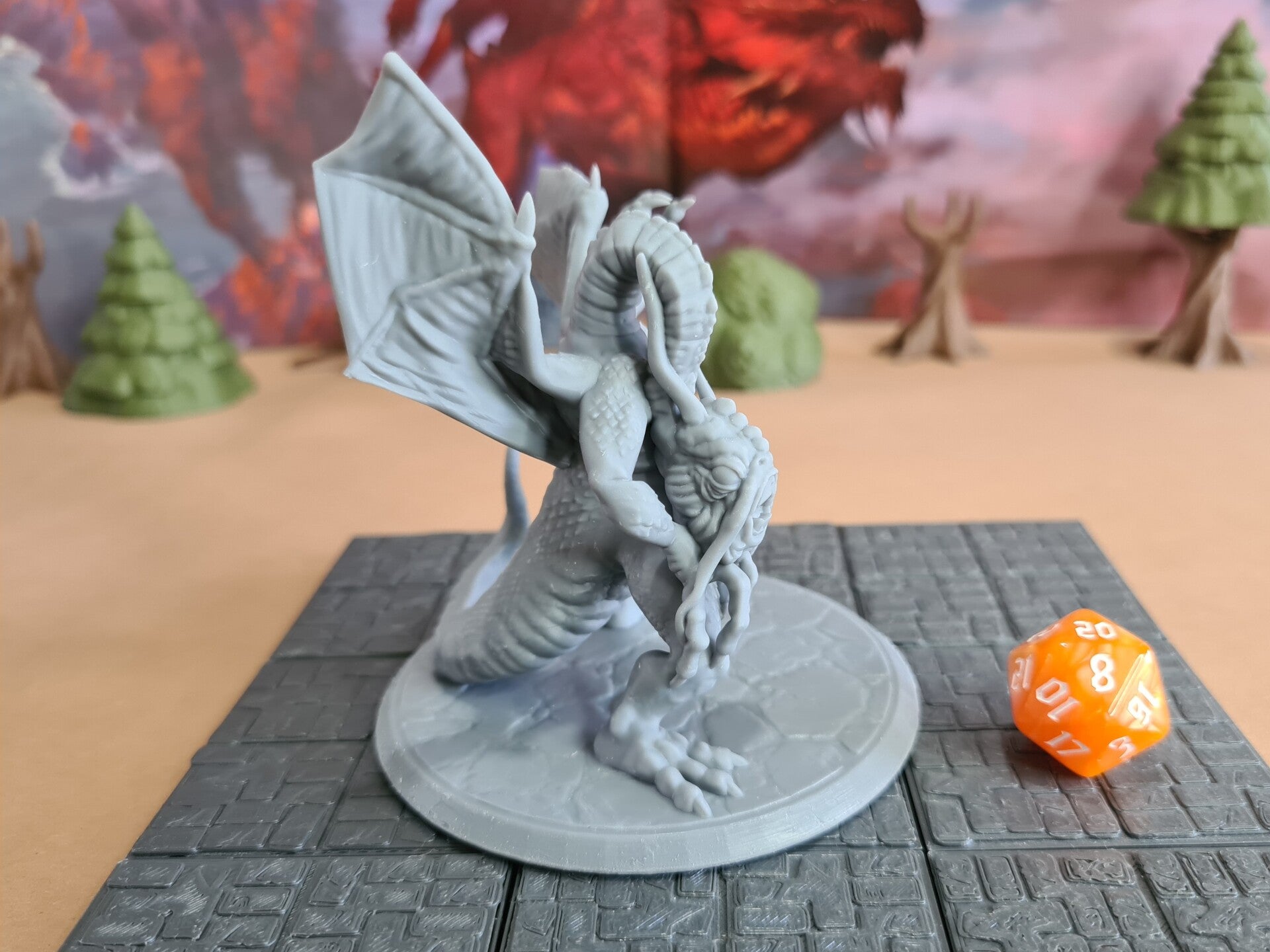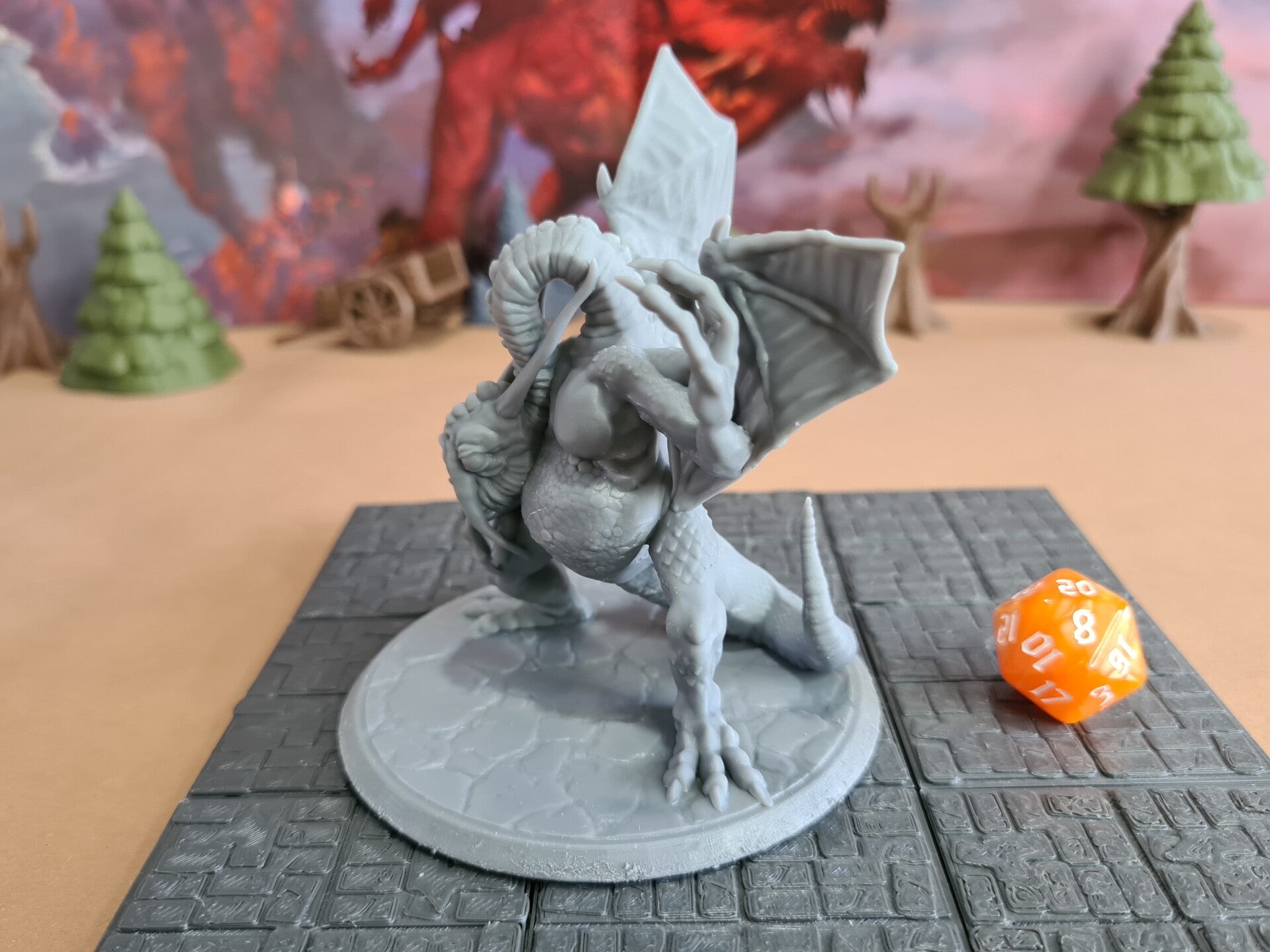 This jabberwocky miniature are scaled for 28mm games common in D&D, Pathfinder, and most other popular tabletop games.