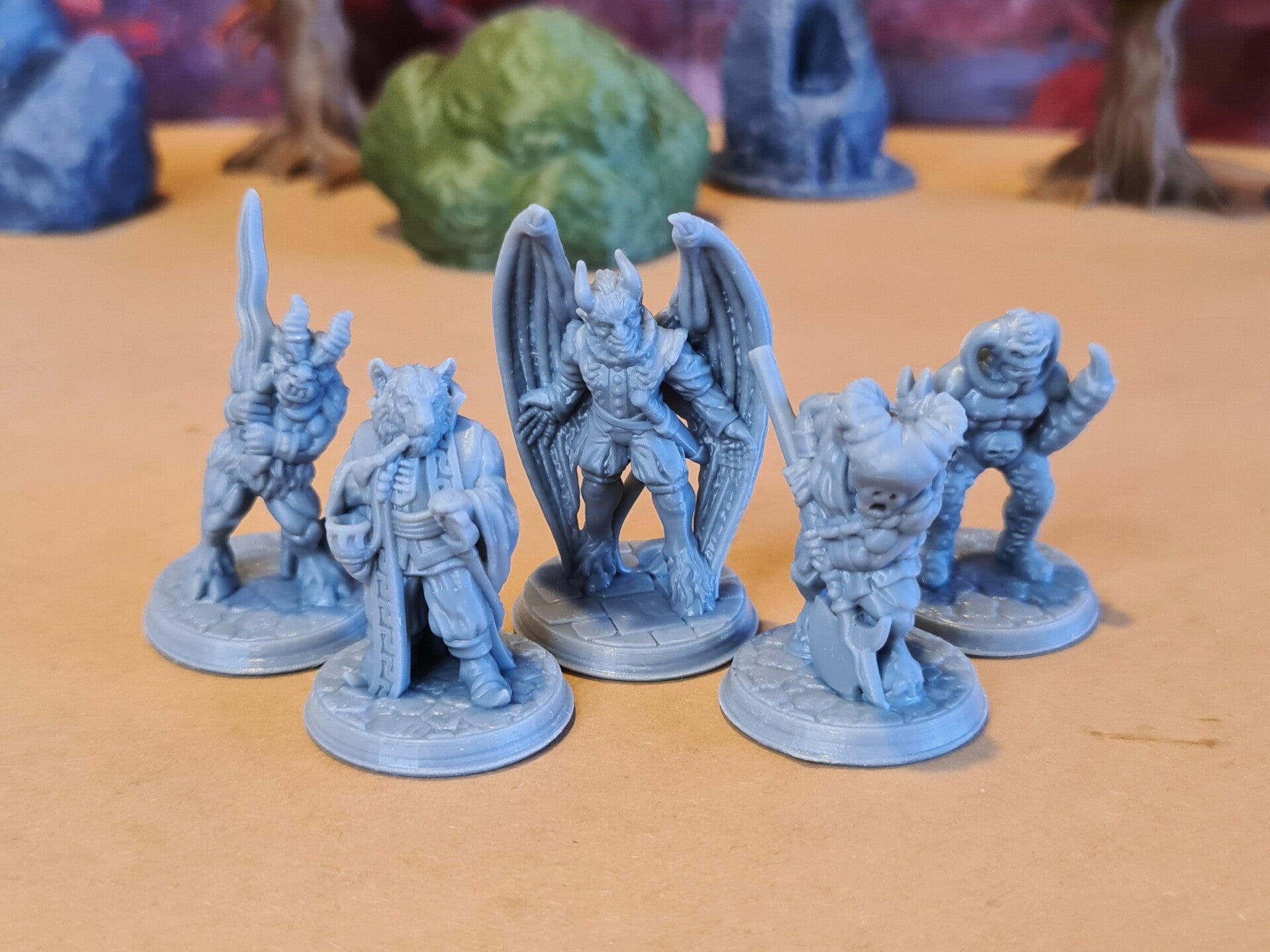 The miniatures are 3D printed from high quality grey resin. This technique produces very detailed miniatures, which have been cleaned, hardened, and are ready to prime and paint.