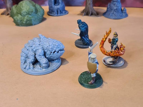 The miniatures are 3D printed from high quality grey resin. This technique produces very detailed miniatures, which have been cleaned, hardened, and are ready to prime and paint.