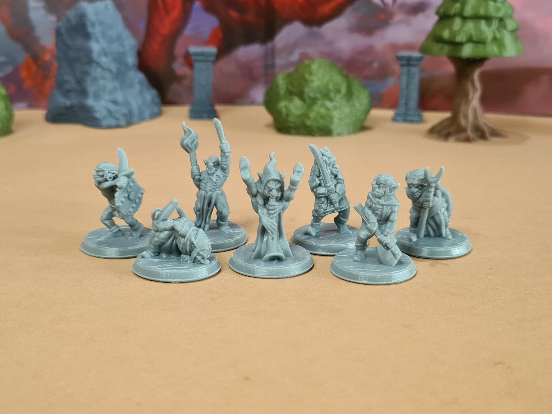 Heroes always bully goblins, but not anymore. Together, goblins strong! These fierce goblins might not be as intimidating by themselves, but as a group they can be quite menacing. These goblins can be bought separately, orall together at a discounte price. In total there are 7 different goblins to choose from: