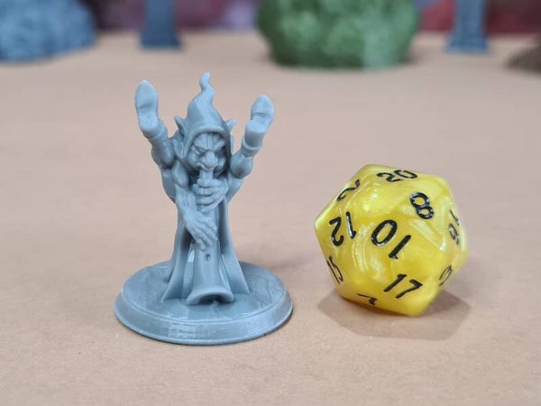 The miniatures are 3D printed from high quality grey resin. This technique produces very detailed miniatures, which have been cleaned, hardened, and are ready to prime and paint.