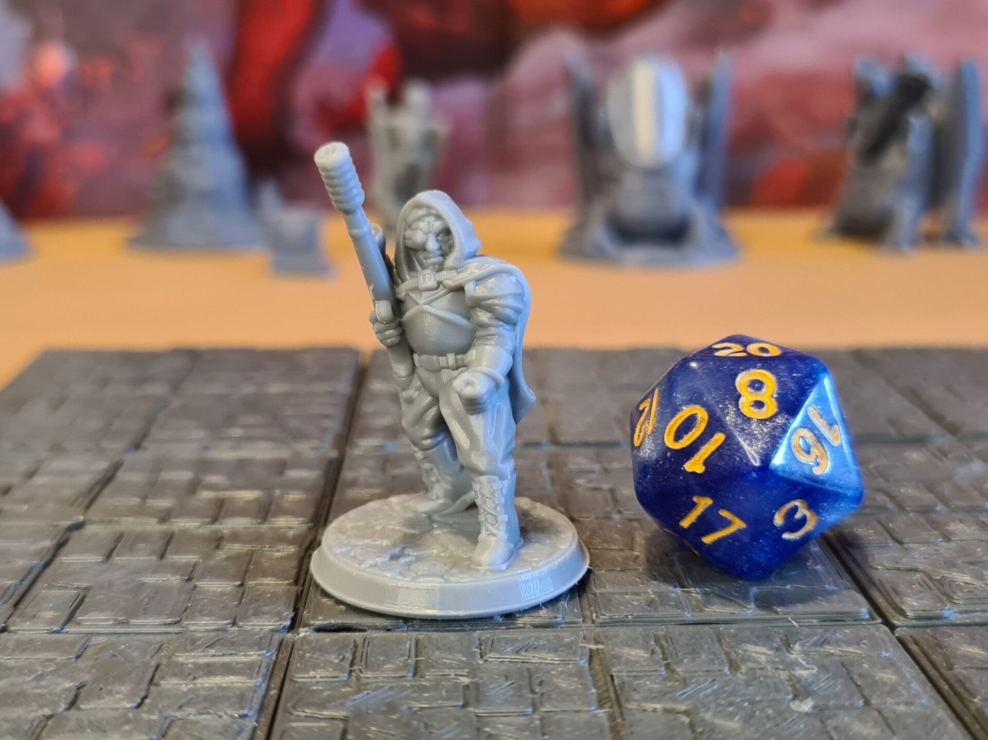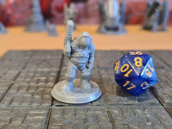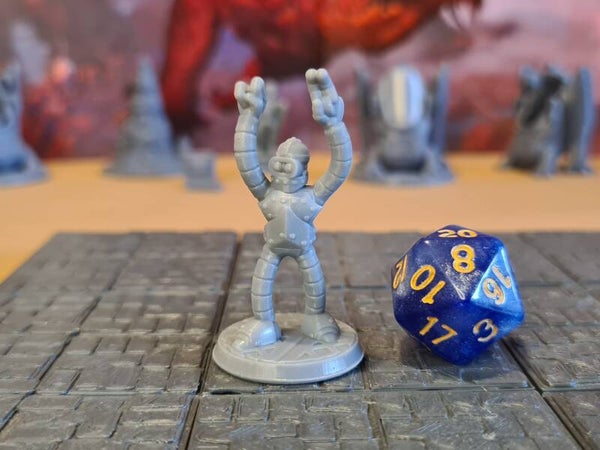 The miniatures are 3D printed from high quality grey resin. This technique produces very detailed miniatures, which have been cleaned, hardened, and are ready to prime and paint.