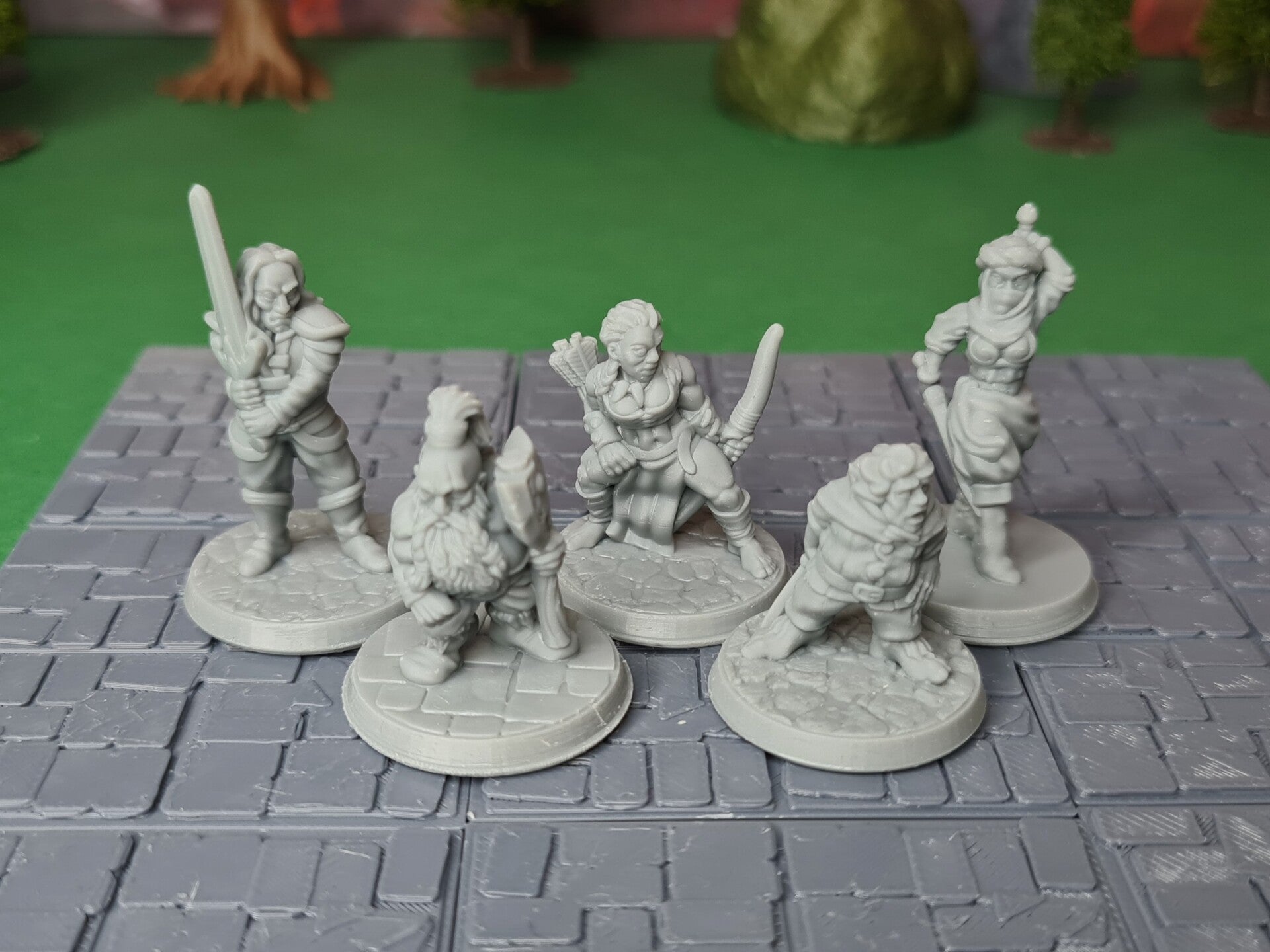 Adventure awaits! This Hero Party consists of 5 miniatures scaled for 28mm games common in D&D, Pathfinder, and most other popular tabletop games.