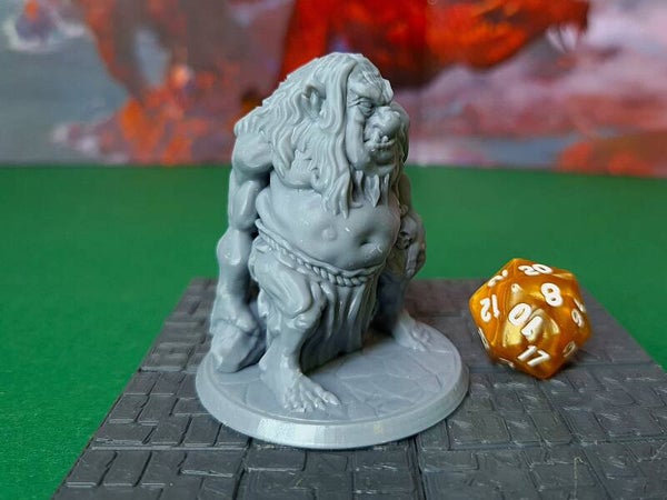 These troll miniatures are scaled for 28mm games common in D&D, Pathfinder, and most other popular tabletop games.