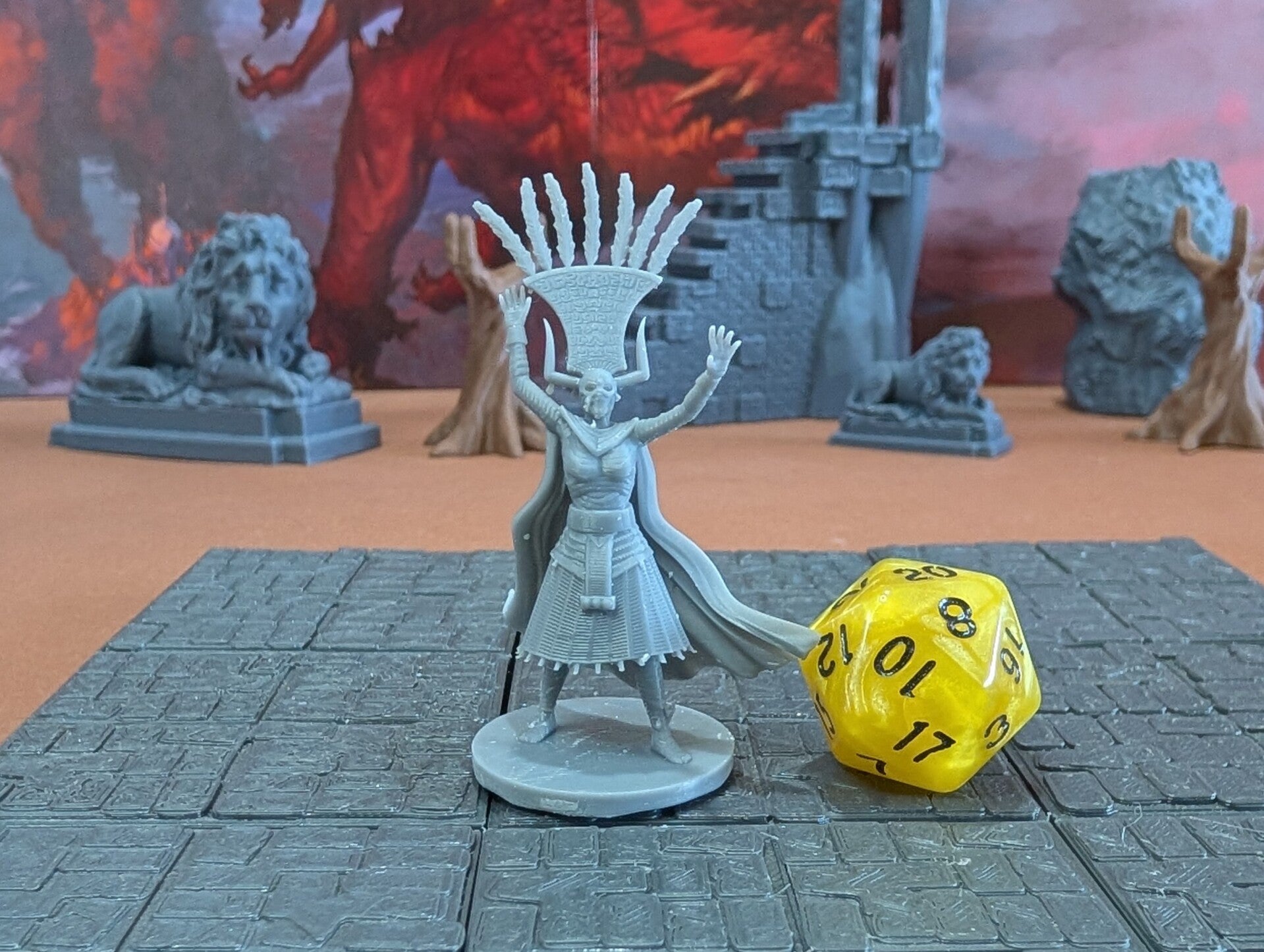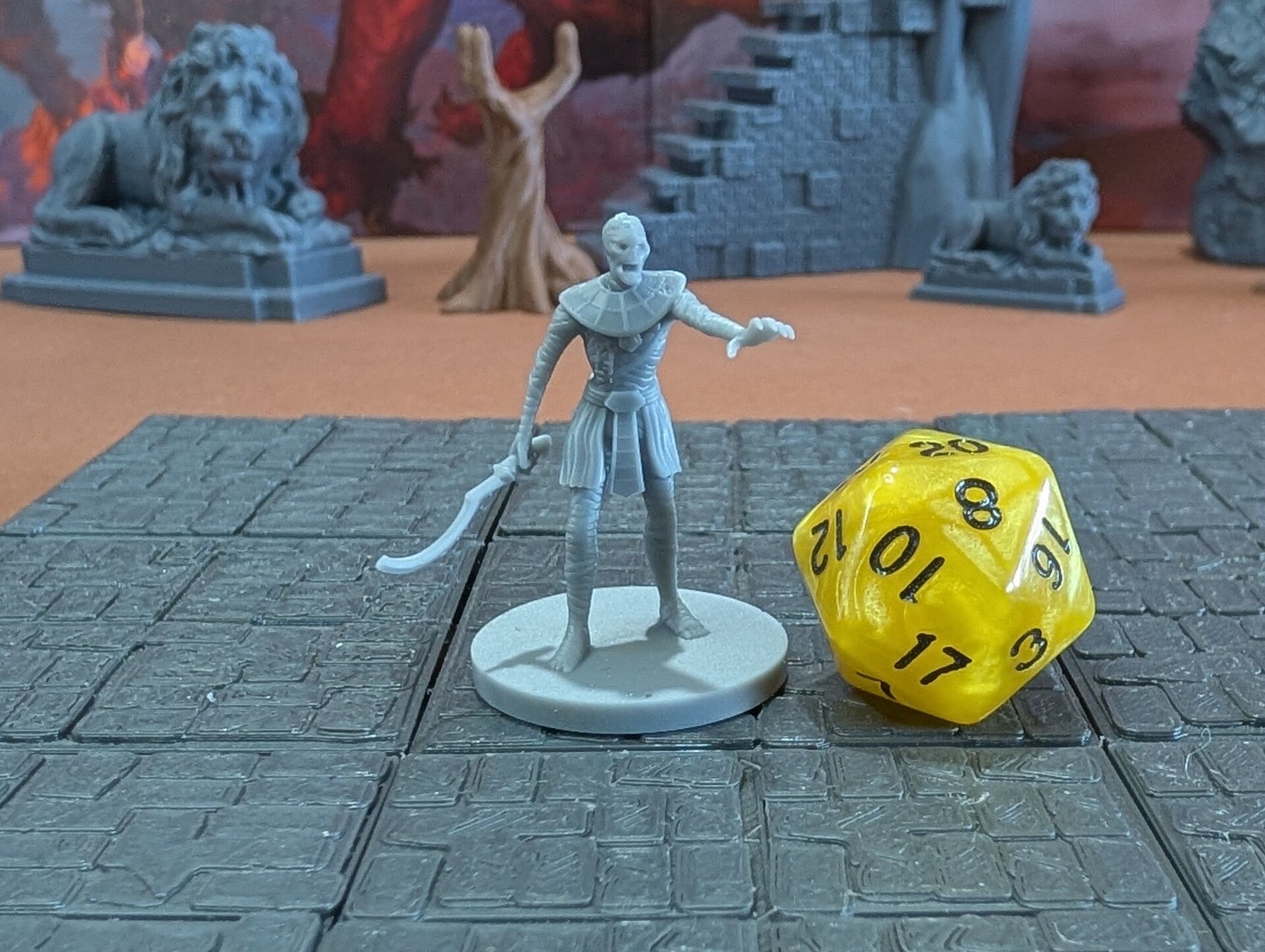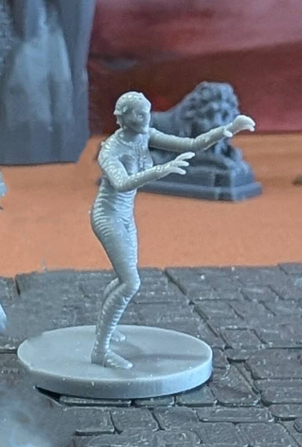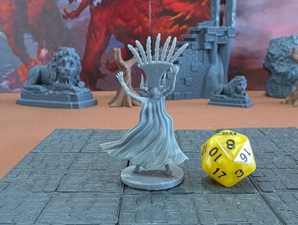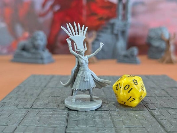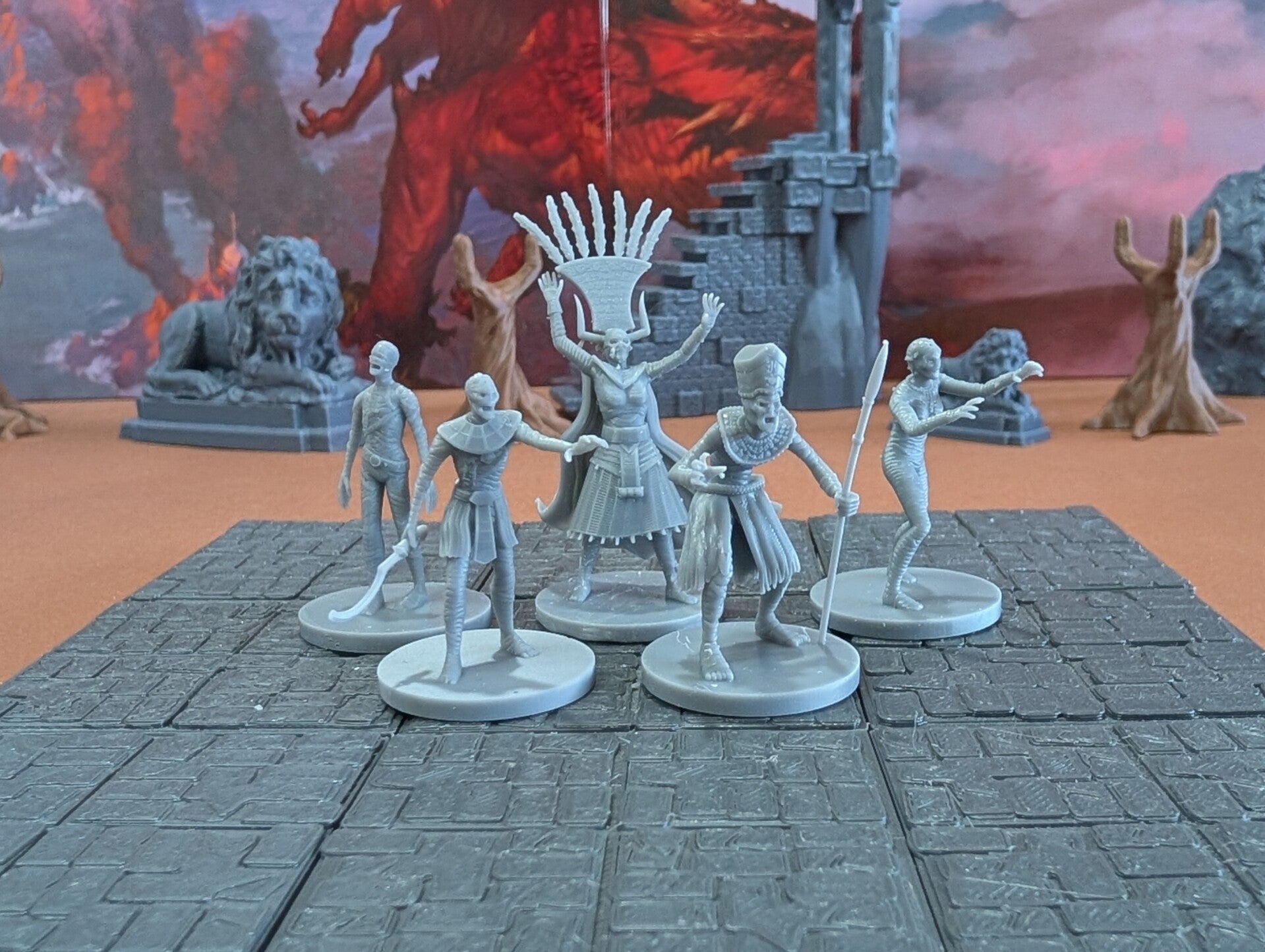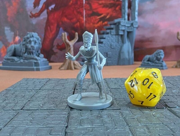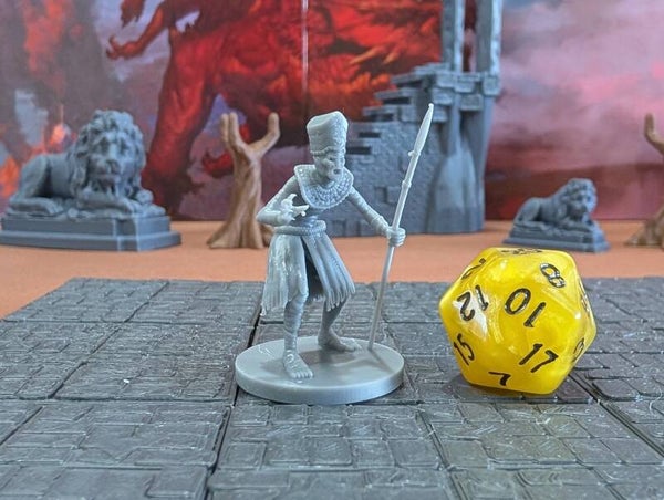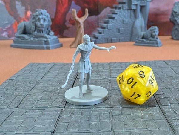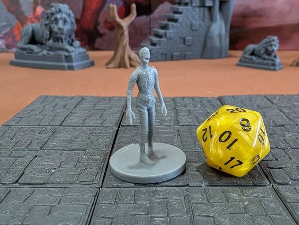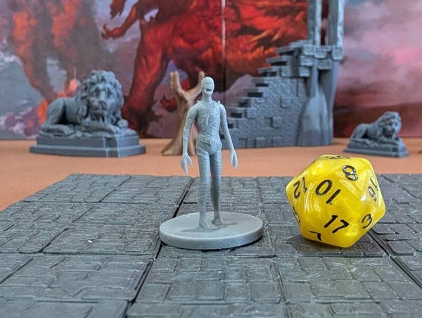 The miniature mummies are scaled for 28mm games common in Dungeons and Dragons (D&D), Pathfinder, and most other popular tabletop games.