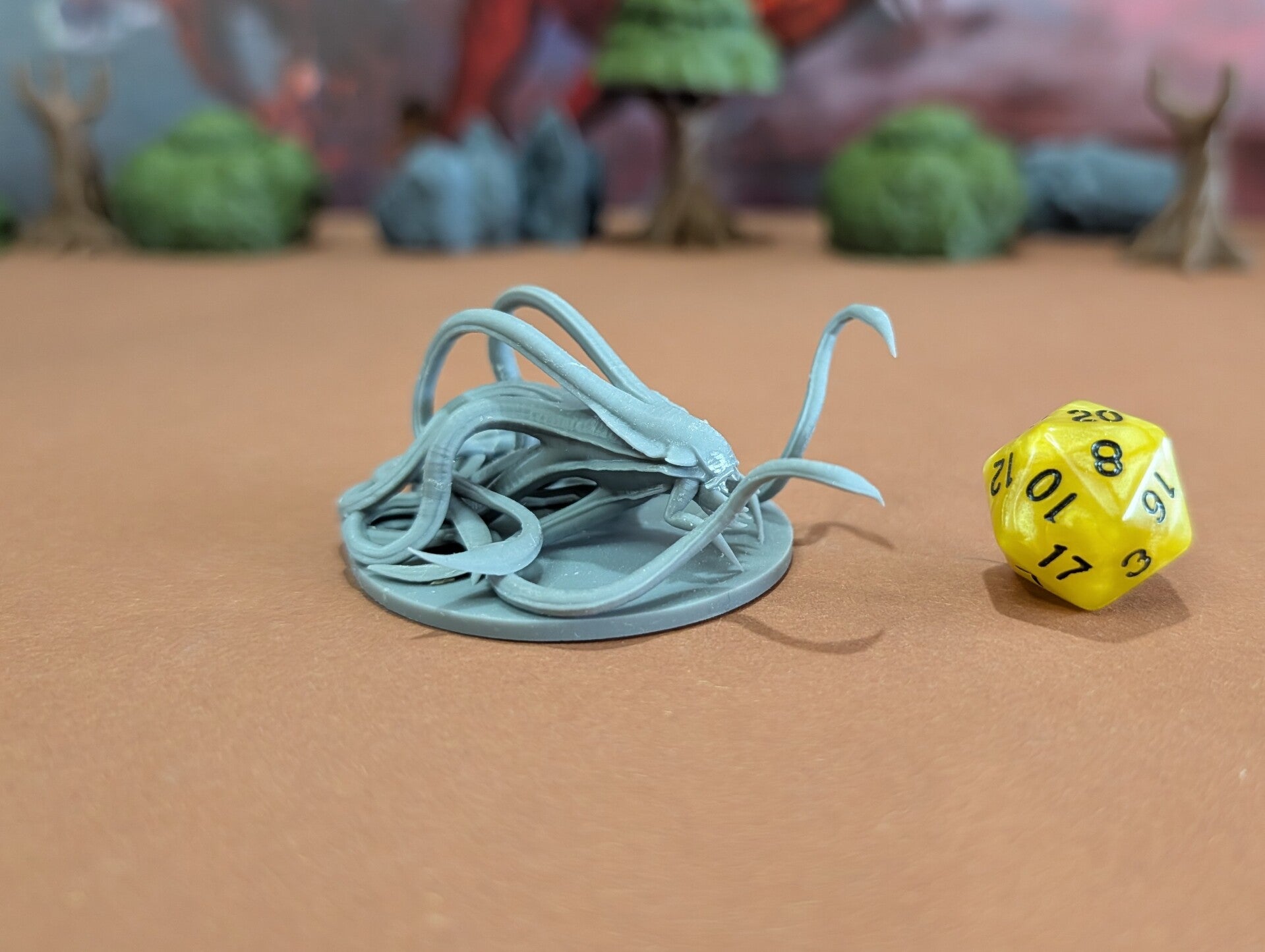 This Aboleth Miniature is size Large and scaled for 28mm games common in D&D, Pathfinder, and most other popular tabletop games.