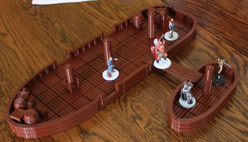 This modular OpenLock ship is perfect for bringing your tabletop adventures out to the open seas. With the modular OpenLock tiles you can adapt the ships size to fit your exact needs. The ship is scaled for 28mm games common in D&D, Pathfinder, and most other popular tabletop games.