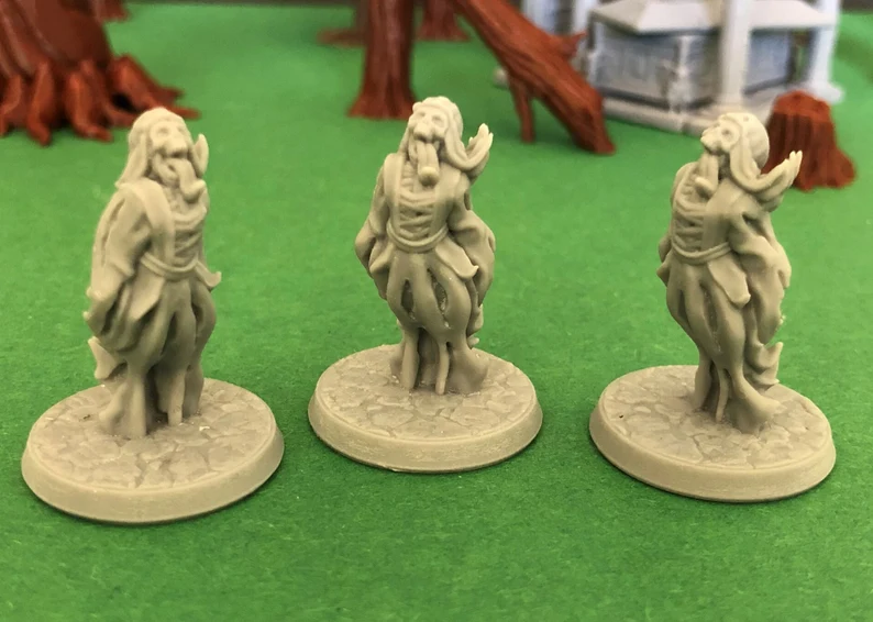 The miniatures are 3D printed from high quality grey resin. This technique produces very detailed miniatures, which have been cleaned, hardened, and are ready to prime and paint.