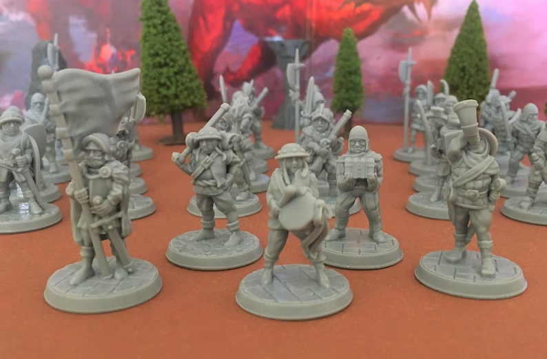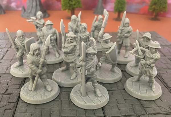 "Badum Badum, Badum Badum" A war drum echoes through the air, as a group of soldiers march in pace. "Left, Left, Right, Left". Pity the party that stands in the way of this army. This Medieval Army consists of 4 different units and has a total of 29 unique soldier miniatures. You can buy separate units to fight with, or against your players. Or buy the whole army at a discounted price to play out large combats on the battlefield. Looking to buy individual soldiers or compose your own army? Check out our other listings of specific army units or send us a message requesting a custom order.
