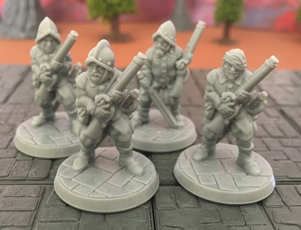 The miniatures are 3D printed from high quality grey resin. This technique produces very detailed miniatures, which have been cleaned, hardened, and are ready to prime and paint.
