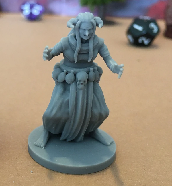 The sounds of cackling spells fill the damp forest air. A coven of evil haggs is brewing up something horrible. These creepy witches are sure to wreak havoc on a party of unsuspecting heroes. Choose from a shadowy night hag, an ugly green hag, or an amphibious night hag, or buy all three of them as a coven at a discounted price. If you want a specific group composition, please send a message with your order.