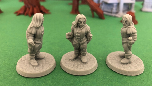 The miniatures are 3D printed from high quality grey resin. This technique produces very detailed miniatures, which have been cleaned, hardened, and are ready to prime and paint.