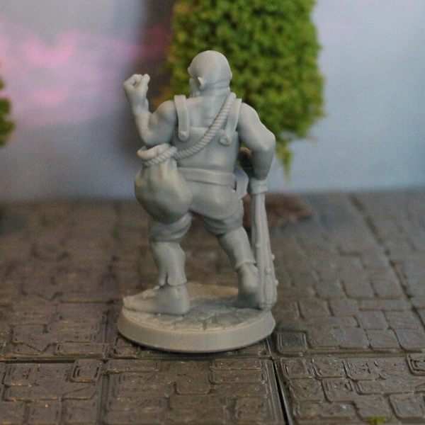 The Ogre is scaled for 28mm games common in D&D, Pathfinder, and most other popular tabletop games.