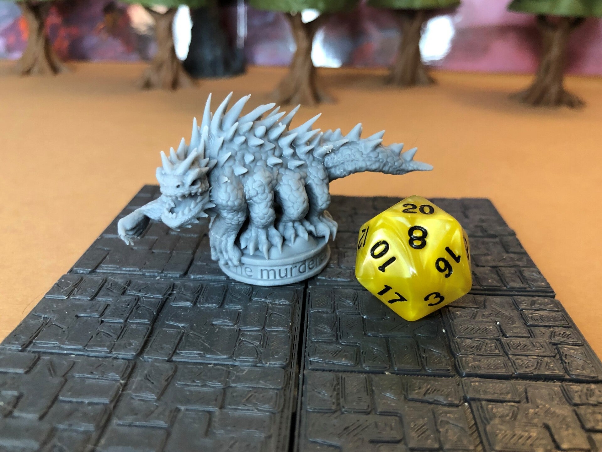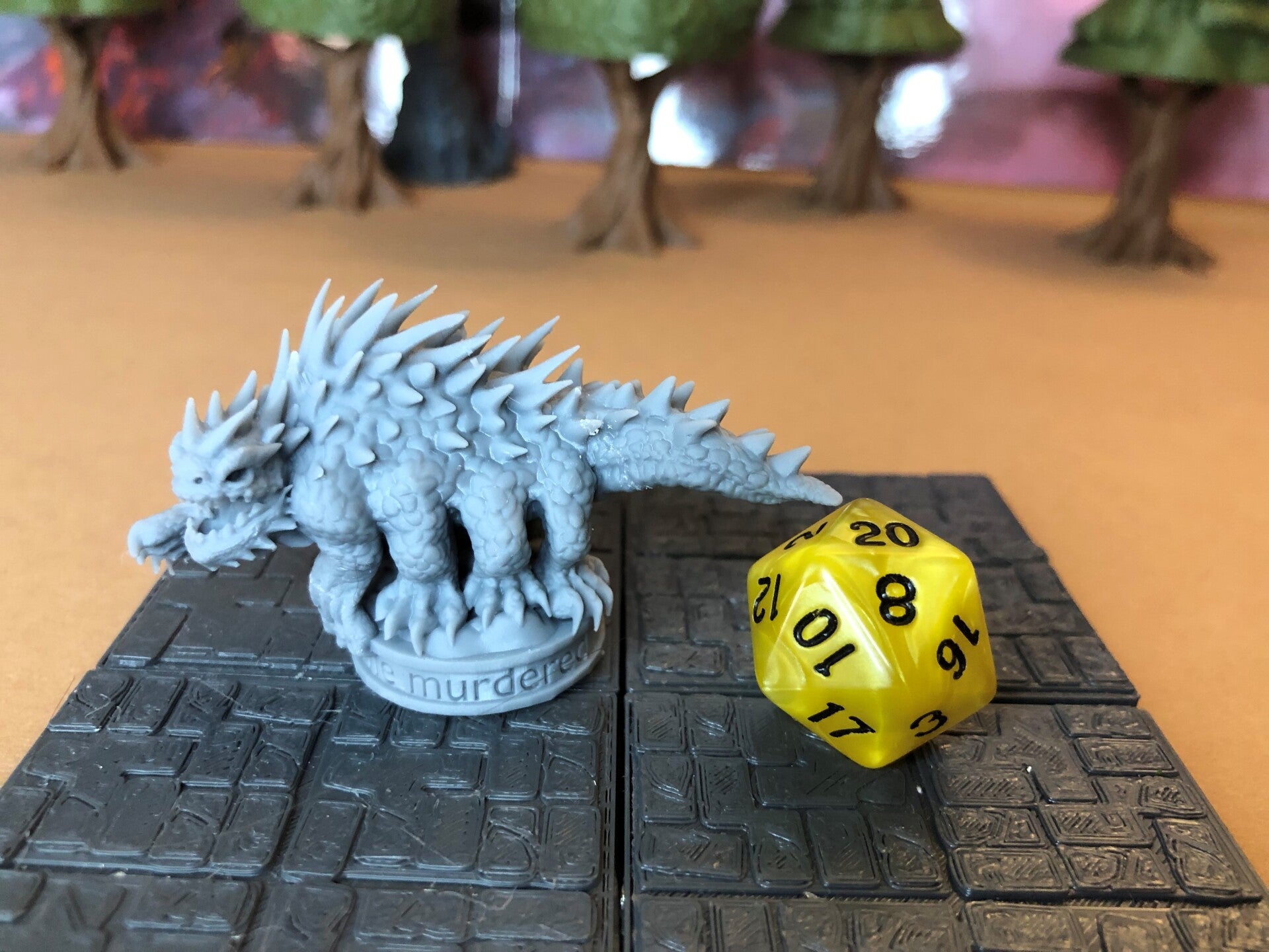 The Basilisk miniature is scaled for 28mm games common in D&D, Pathfinder, and most other popular tabletop games.